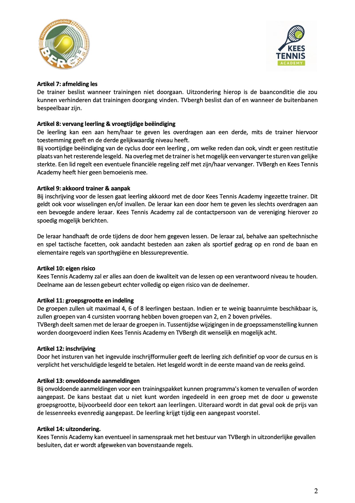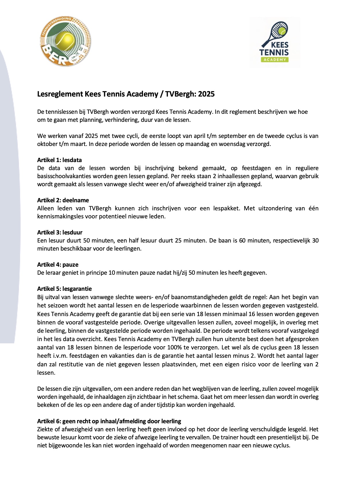 Tennisles tarieven